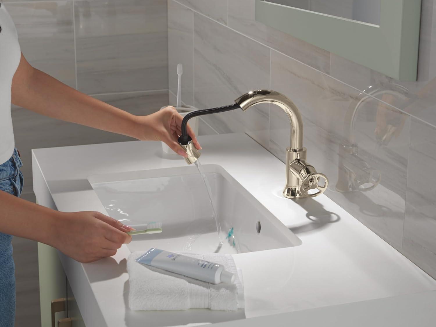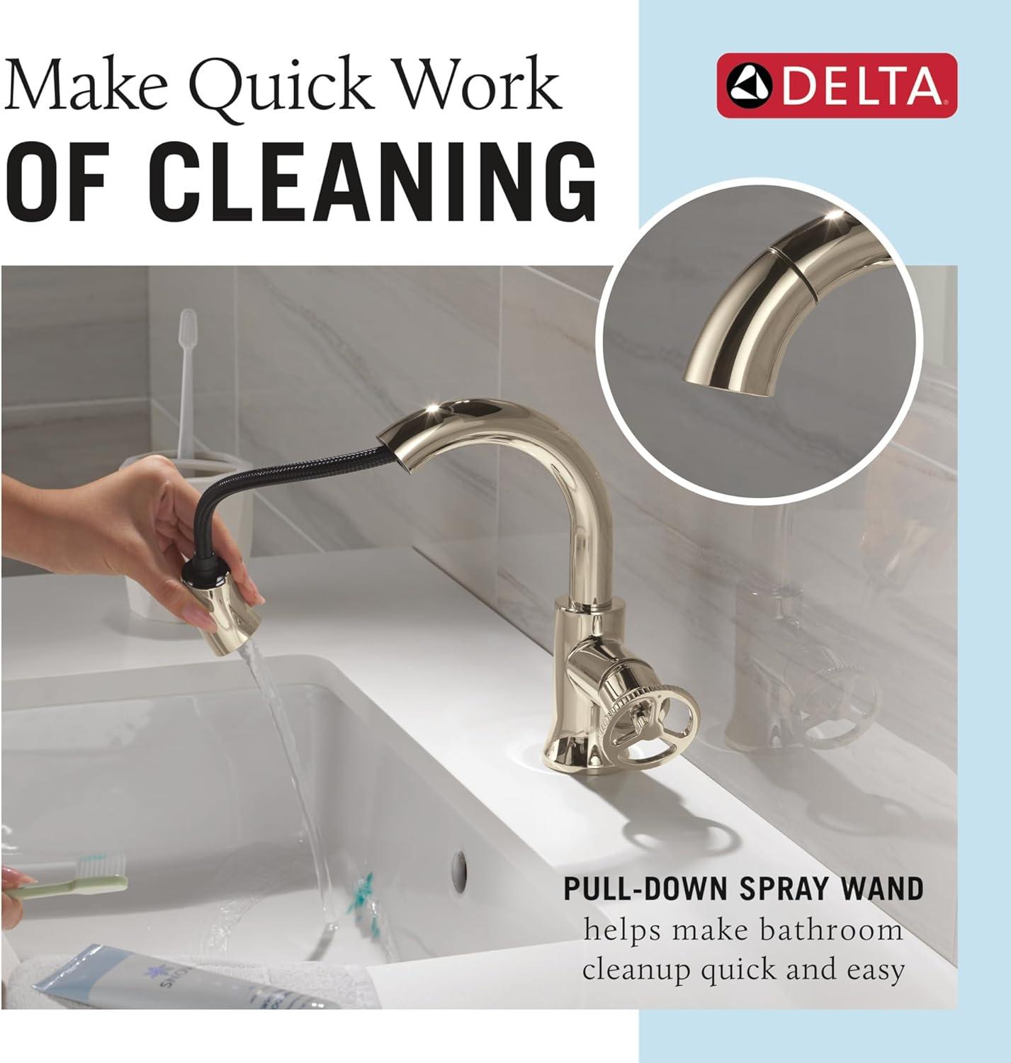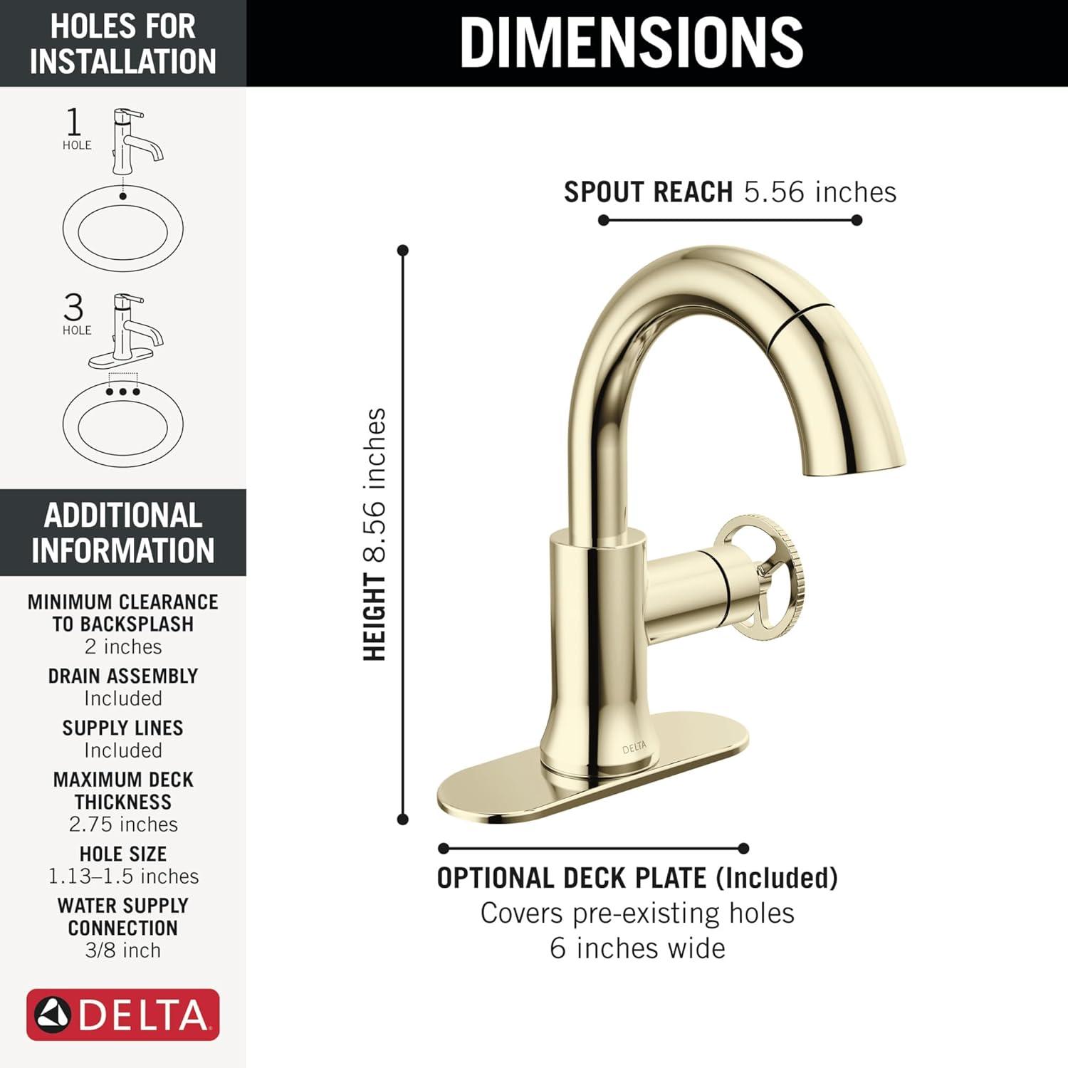 Get more for your money with our exclusive bundle deals on Delta Trinsic High Arc 1-Hole Bathroom Faucet with Wheel Handle, Polished Nickel Single Hole Bathroom Sink Faucet, Push-Pop Drain Assembly, Polished Nickel 558HAR-PN-DST(Polished Nickel) and accessories.